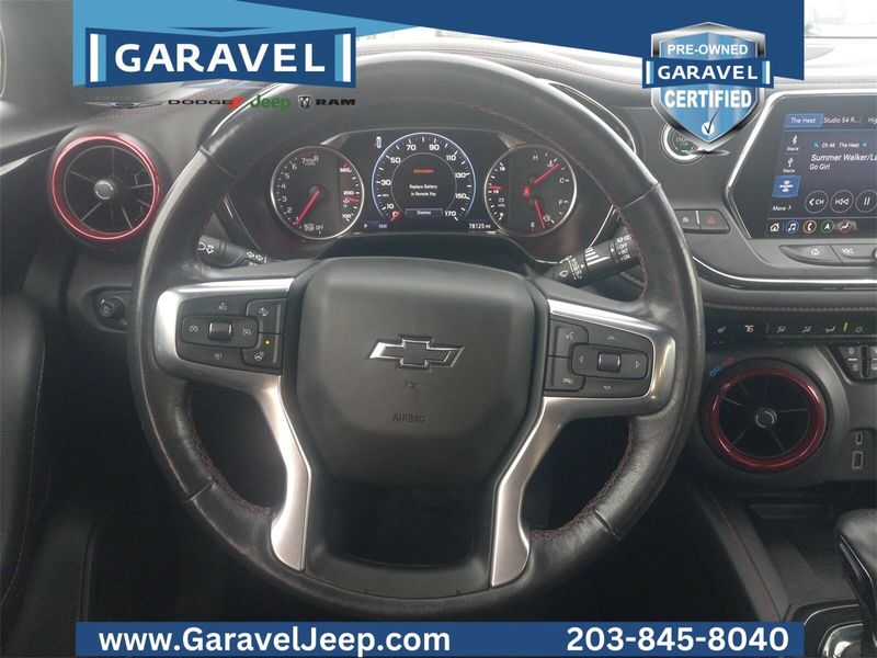 2020 Chevrolet Blazer RS Black Garavel Certified, 3.6L V6 SIDI DOHC VVT, AWD, Jet Black w/Perforated Leather-Appointed Seat Trim, ***CARFAX One Owner and No Accidents Reported!***, ***Priced Below Kelley Blue Book!***, ***Apple CarPlay/Android Auto!***, ***Navigation / Nav / GPS System***, CARFAX Great Value! $23,020, CarGurus Great Deal!, Advanced Adaptive Cruise Control, Enhanced Convenience & Driver Confidence II Pkg, Following Distance Indicator, Forward Collision Alert, Front Pedestrian Braking, Heated Driver & Front Passenger Seats, Heated Rear Outboard Seating Positions, Heated steering wheel, Hitch Guidance w/Hitch View, Lane Keep Assist w/Lane Departure Warning, Rear Camera Mirror, Ventilated Driver & Front Passenger Seats, Wheels: 20'' Dark Android Machined-Face Aluminum.