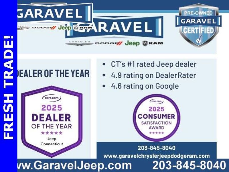 Certification Program Details: Garavel Certified Pre-Owned includes: * Powertrain Limited Warranty: 60 Month / 100,000 Miles from Vehicle Sale Date and at Zero (0) Miles on the Odometer Whichever Occurs First * Reimbursement for a Rental Vehicle or Alternate Transportation * Trip Interruption Reimbursement * Vehicle History report ** See Dealer for Limited Warranty Details. Check our ratings on Dealerrater.com. We have received the DealerRater ''Dealer of the Year'' Award 12 years in a row!