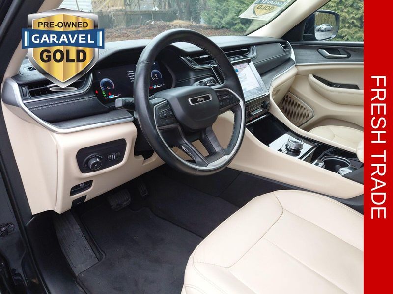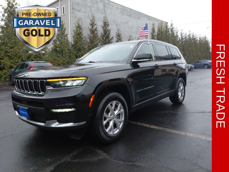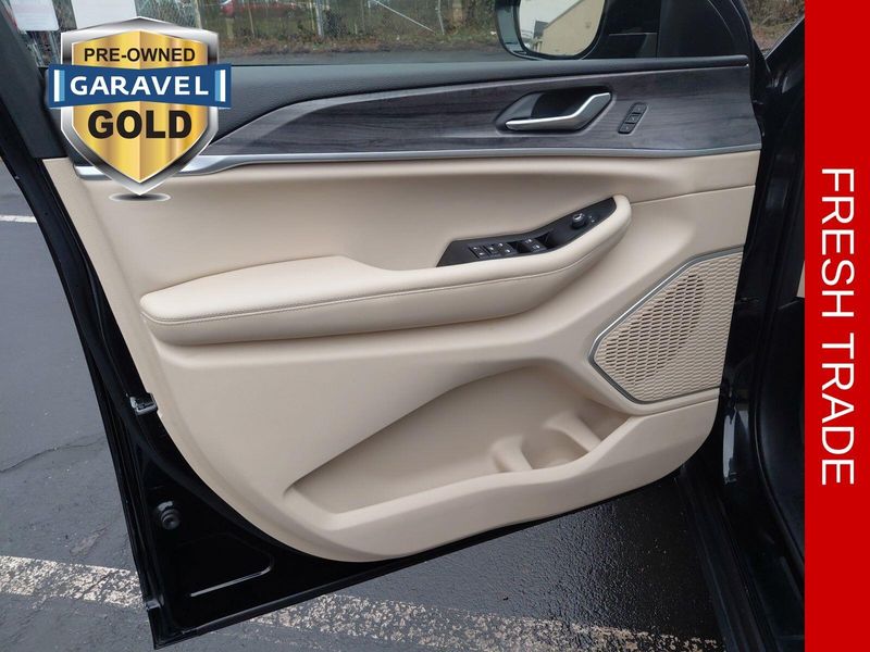2021 Jeep Grand Cherokee L Limited Diamond Black Crystal Pearlcoat 4WD, Diamond Black Crystal Pearlcoat, Wicker Beige/Global Black Leather, ***CARFAX One Owner!***, ***Apple CarPlay/Android Auto!***, Adaptive Cruise Control with Stop and Go Active LaneManagement System FullSpeed ForwardCollision Warning Plus ParkView Rear BackUp Camera Parksense Rear ParkAssist with Stop BlindSpot and CrossPath Detection Advanced BrakeAssist Pedestrian / Cyclist Emergency Braking, 3rd row seats: split-bench, Apple CarPlay/Android Auto, Auto High-beam Headlights, Automatic temperature control, Bluetooth Hands Free, Heated Front Seats, Heated Second Row Seats, Heated steering wheel, Memory seat, ParkView Rear Back-Up Camera, Power Liftgate, Reclining 3rd row seat, Steering wheel mounted audio controls, Turn signal indicator mirrors.