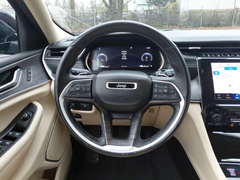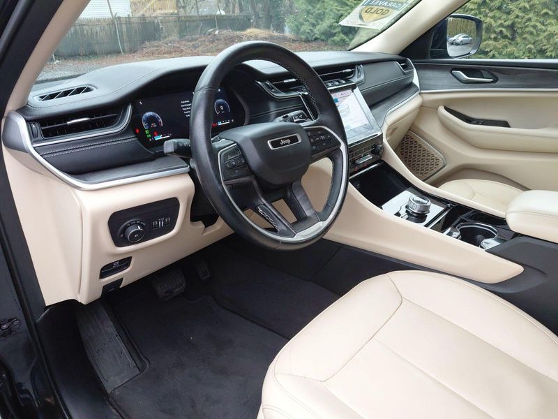 2021 Jeep Grand Cherokee L Limited Diamond Black Crystal Pearlcoat 4WD, Diamond Black Crystal Pearlcoat, Wicker Beige/Global Black Leather, ***CARFAX One Owner!***, ***Apple CarPlay/Android Auto!***, Adaptive Cruise Control with Stop and Go Active LaneManagement System FullSpeed ForwardCollision Warning Plus ParkView Rear BackUp Camera Parksense Rear ParkAssist with Stop BlindSpot and CrossPath Detection Advanced BrakeAssist Pedestrian / Cyclist Emergency Braking, 3rd row seats: split-bench, Apple CarPlay/Android Auto, Auto High-beam Headlights, Automatic temperature control, Bluetooth Hands Free, Heated Front Seats, Heated Second Row Seats, Heated steering wheel, Memory seat, ParkView Rear Back-Up Camera, Power Liftgate, Reclining 3rd row seat, Steering wheel mounted audio controls, Turn signal indicator mirrors.