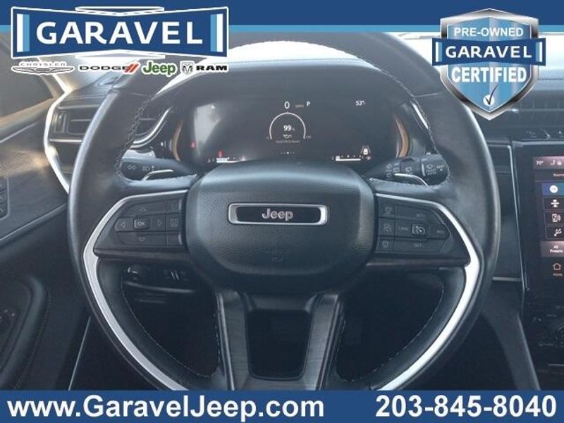 2022 Jeep Grand Cherokee L Limited Diamond Black Crystal Pearlcoat Garavel Certified, 3.6L V6 24V VVT, 4WD, Global Black Leather Trimmed Bucket Seats, ***CARFAX One Owner and No Accidents Reported!***, 3rd Row Seat, ***Priced Below Kelley Blue Book!***, ***Panoramic Sunroof / Moonroof***, ***Apple CarPlay/Android Auto!***, ***New Tires!***, JUST OFF LEASE!, ***9 Amplified Speakers w/Subwoofer***, ***Uconnect 5 Nav w/10.1'' Display***, Bluetooth Hands Free, Heated Front Seats, Heated Second Row Seats, Heated steering wheel, Memory seat, ParkView Rear Back-Up Camera, Power Liftgate, Steering wheel mounted audio controls.