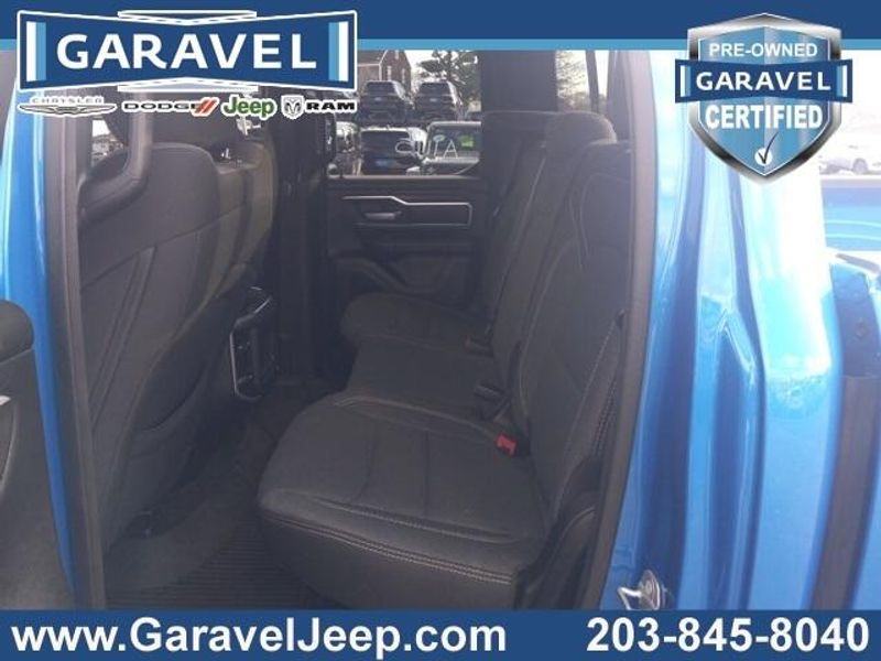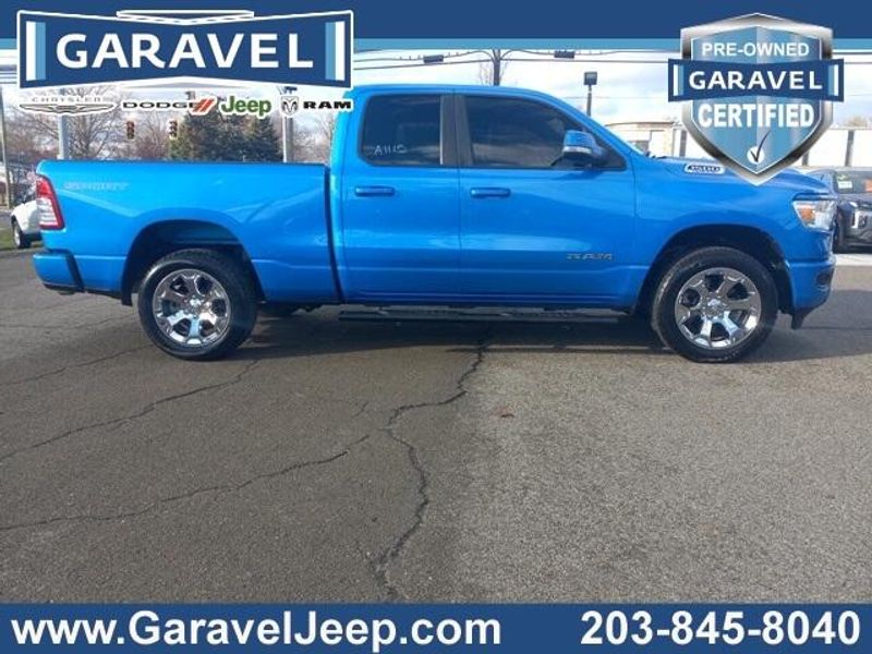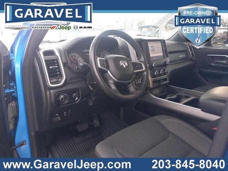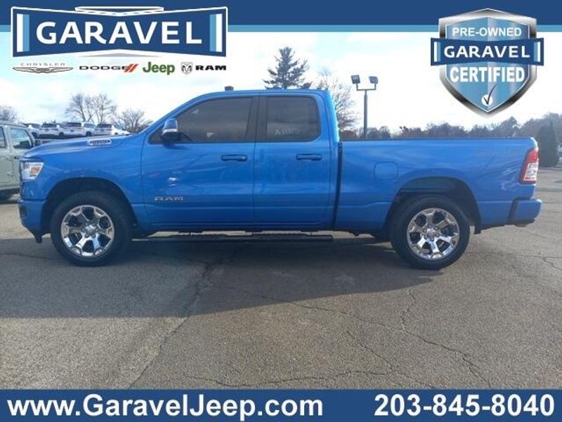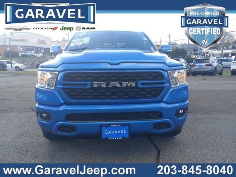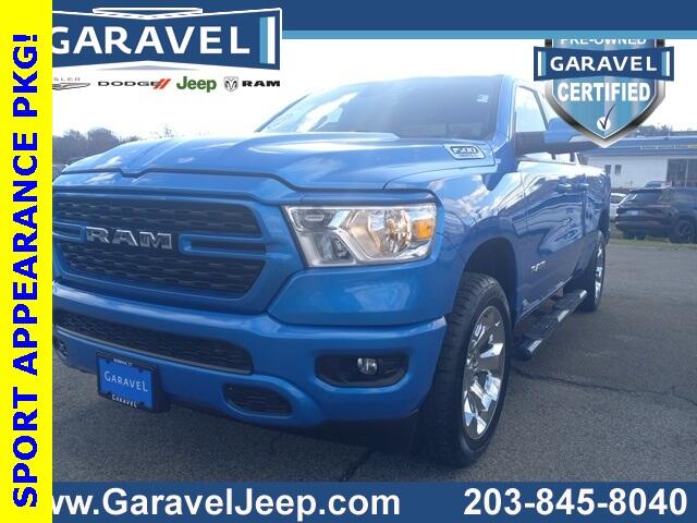 2022 Ram 1500 Big Horn/Lone Star Hydro Blue Pearlcoat Garavel Certified, HEMI 5.7L V8 Multi Displacement VVT, 4WD, Black w/Deluxe Cloth Bucket Seats, ***CARFAX One Owner and No Accidents Reported!***, ***Apple CarPlay/Android Auto!***, 20'' Aluminum Chrome Clad Wheels, 8.4'' Touchscreen Display, Big Horn Level 1 Equipment Group, Bluetooth Handsfree Phone & Audio, Body Color Exterior Mirrors, Class IV Receiver Hitch, Electronic Stability Control, Exterior Mirrors w/Supplemental Signals, For Details, Visit DriveUconnect.com, Leather steering wheel, ParkView Rear Back-Up Camera, Power Adjustable Pedals, Power-Folding Mirrors, Rear Power Sliding Window, Rear Window Defroster, Remote Start System, Sport Appearance Package, Sport Decal, Steering wheel mounted audio controls, Traction control.