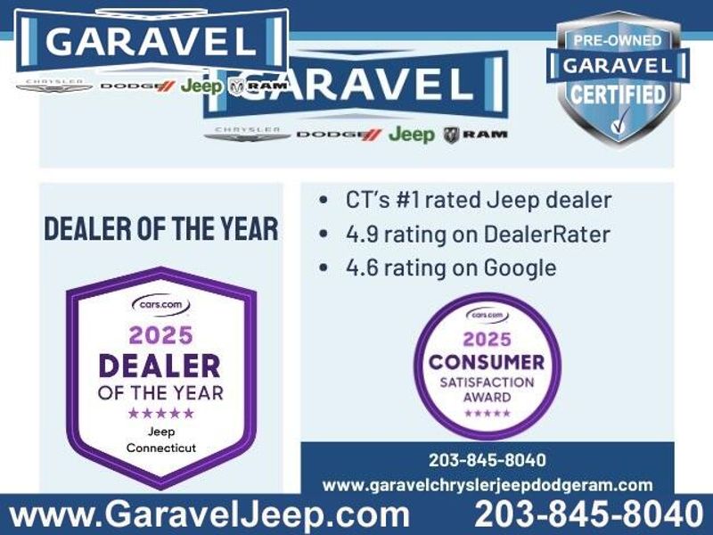 Certification Program Details: Garavel Certified Pre-Owned includes: * Powertrain Limited Warranty: 60 Month / 100,000 Miles from Vehicle Sale Date and at Zero (0) Miles on the Odometer Whichever Occurs First * Reimbursement for a Rental Vehicle or Alternate Transportation * Trip Interruption Reimbursement * Vehicle History report ** See Dealer for Limited Warranty Details. Check our ratings on Dealerrater.com. We have received the DealerRater ''Dealer of the Year'' Award 12 years in a row!