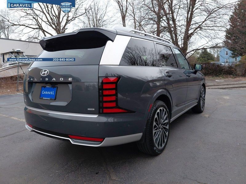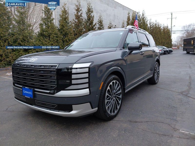 2026 Hyundai Palisade Hybrid Calligraphy Ecotronic Gray Pearl Garavel Certified, 2.5L Turbocharged GDI 4-Cylinder Hybrid, ***CARFAX One Owner and No Accidents Reported!***, ***Panoramic Sunroof / Moonroof***, ***Navigation / Nav / GPS System***, Proximity Key w/ Push Button Start Hands-Free Smart Power Liftgate w/ Auto Open Smart Cruise Control Highway Driving Assist Surround View Monitor Remote Smart Park Assist Nappa Leather-Trimmed Seating Surfaces Heated & Ventilated, Power Front Seats Ergo Motion & Integrated Memory for Driver's Sea, 1st & 2nd Row Relaxation Seats 2nd Row Heated & Ventilated, Power Captain's Chairs 2nd Row Manual Window Curtains Power Folding & Sliding 3rd Row w/ Heated Outboard Seats Heated Steering Wheel 3-Zone Automatic Temperature Control 12.3'' Digital Instrument Cluster Head-Up Display Ambient Interior Lighting Digital Rearview Mirror w/ HomeLink Front & Rear USB Ports, 115V Power Outlet MULTIMEDIA & CONNECTIVITY 12.3'' Navigation System w/ AM/FM/HD RadioTM Bose Premium Audio System Wireless Android AutoTM & Apple CarPlay Wireless Phone Charger.