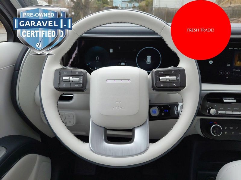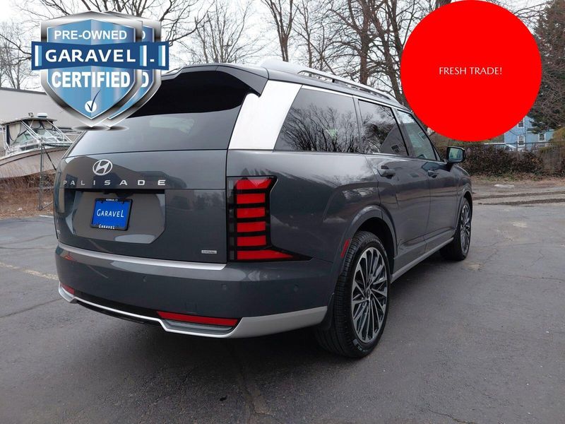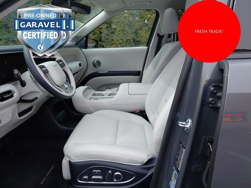 2026 Hyundai Palisade Hybrid Calligraphy Ecotronic Gray Pearl Garavel Certified, 2.5L Turbocharged GDI 4-Cylinder Hybrid, ***CARFAX One Owner and No Accidents Reported!***, ***Panoramic Sunroof / Moonroof***, ***Navigation / Nav / GPS System***, Proximity Key w/ Push Button Start Hands-Free Smart Power Liftgate w/ Auto Open Smart Cruise Control Highway Driving Assist Surround View Monitor Remote Smart Park Assist Nappa Leather-Trimmed Seating Surfaces Heated & Ventilated, Power Front Seats Ergo Motion & Integrated Memory for Driver's Sea, 1st & 2nd Row Relaxation Seats 2nd Row Heated & Ventilated, Power Captain's Chairs 2nd Row Manual Window Curtains Power Folding & Sliding 3rd Row w/ Heated Outboard Seats Heated Steering Wheel 3-Zone Automatic Temperature Control 12.3'' Digital Instrument Cluster Head-Up Display Ambient Interior Lighting Digital Rearview Mirror w/ HomeLink Front & Rear USB Ports, 115V Power Outlet MULTIMEDIA & CONNECTIVITY 12.3'' Navigation System w/ AM/FM/HD RadioTM Bose Premium Audio System Wireless Android AutoTM & Apple CarPlay Wireless Phone Charger.