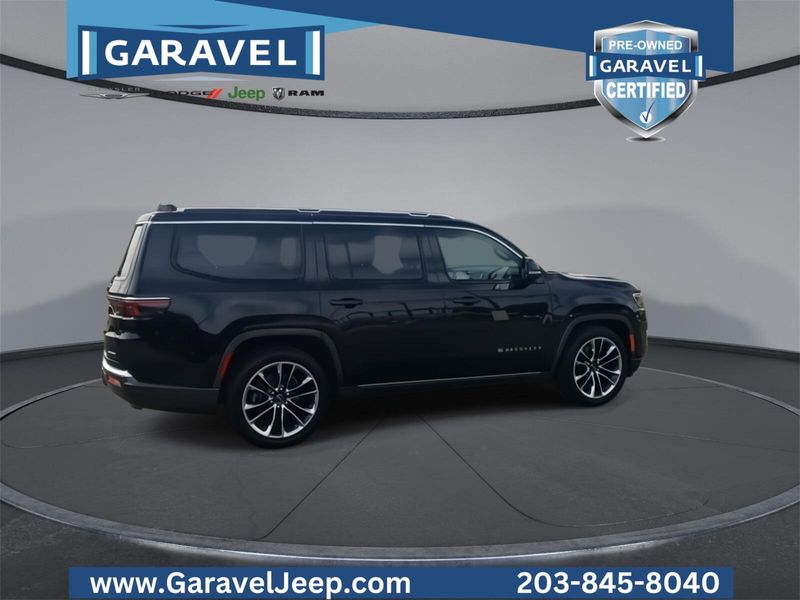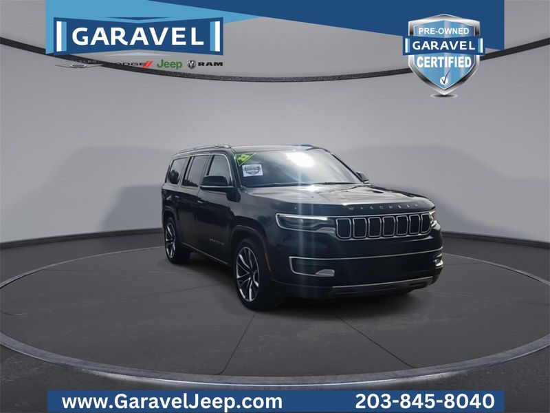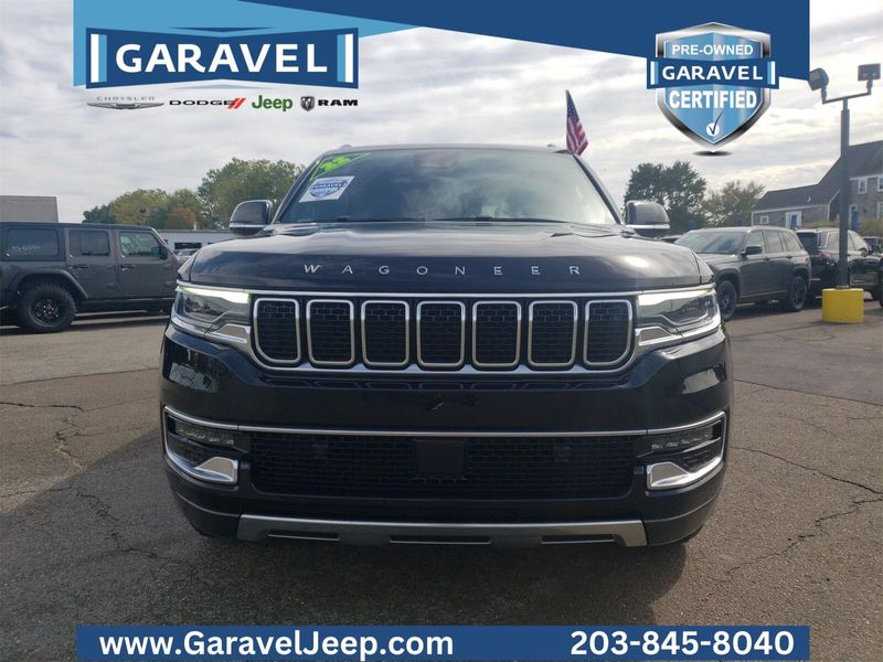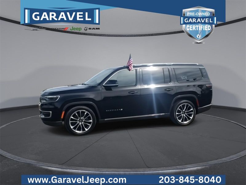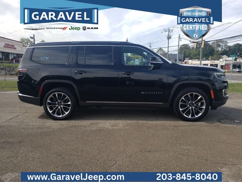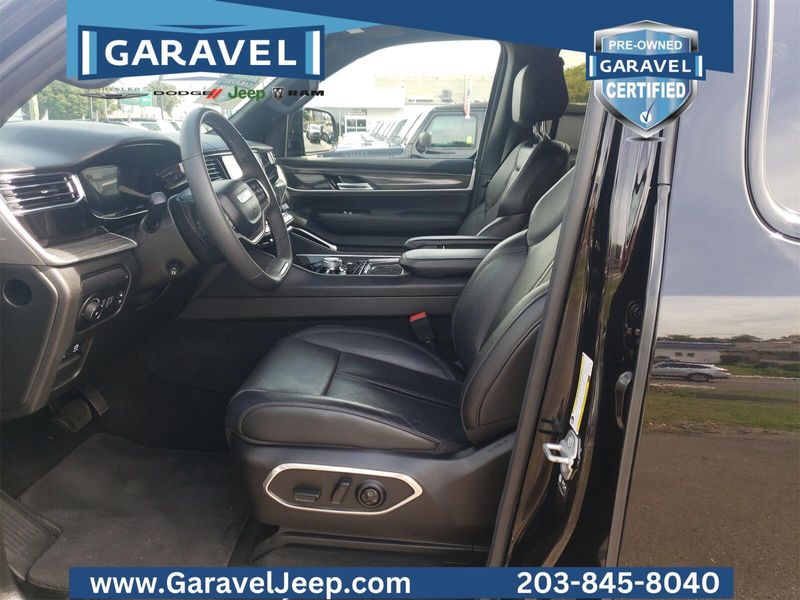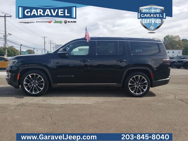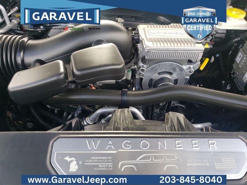 2022 Jeep Wagoneer Series III Diamond Black Crystal Pearlcoat Garavel Certified, 5.7L V8, 4WD, Global Black w/Leather Trimmed Bucket Seats, ***CARFAX No Accidents Reported!***, ***Priced Below Kelley Blue Book!***, ***Panoramic Sunroof / Moonroof***, ***Apple CarPlay/Android Auto!***, ***Navigation / Nav / GPS System***, ***Heads-Up Display***, ***Quadra-Lift Air Suspension***, ***Uconnect 5 Nav w/10.1'' Display***, 19 Speaker McIntosh Audio System, 22'' Polished Aluminum Wheels w/ Black Noise Pockets, 3rd?Row Seat with 60/40 Power Fold/Recline, Flexible Seating Group, Heated Front Seats, Heated Second Row Seats, Heated steering wheel, Power Deployable Running Boards, Power Liftgate, Power Tip/Slide Recline 2nd Row Buckets, Premium Group I (DISC), Turn signal indicator mirrors.