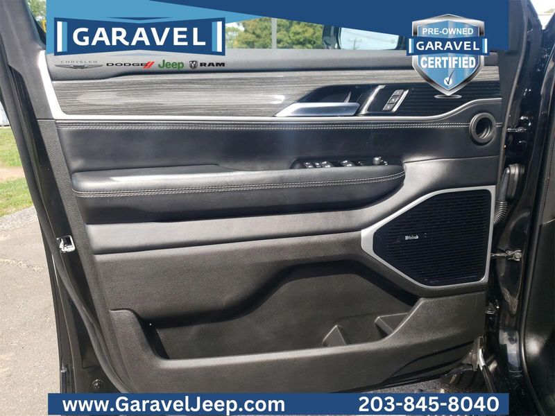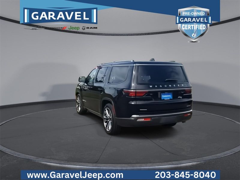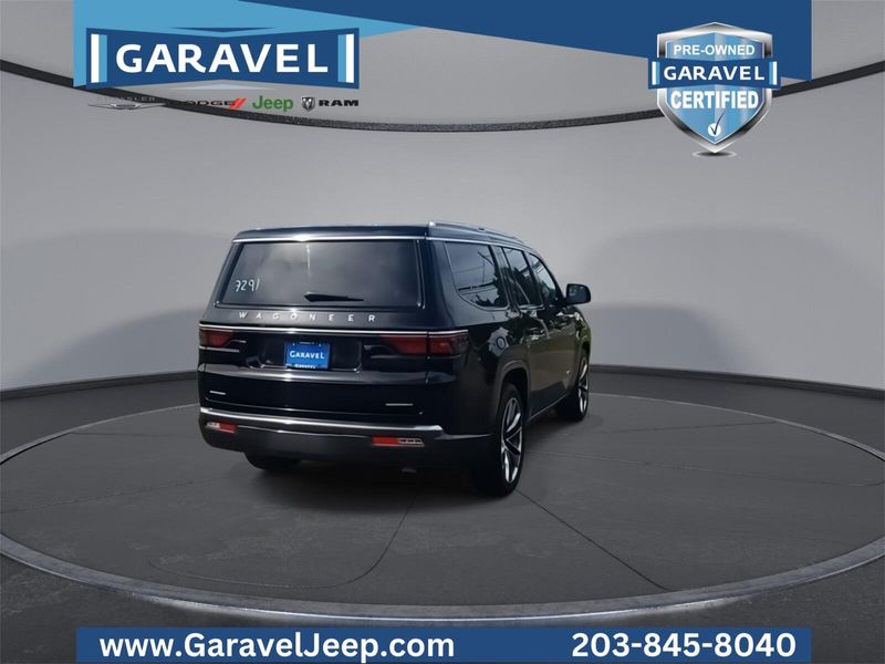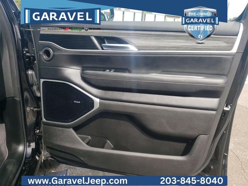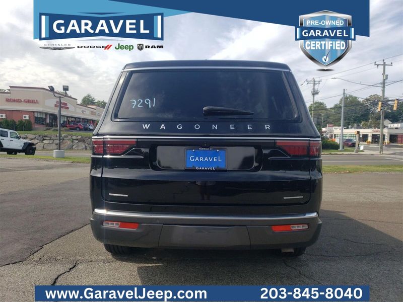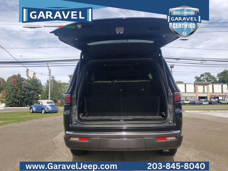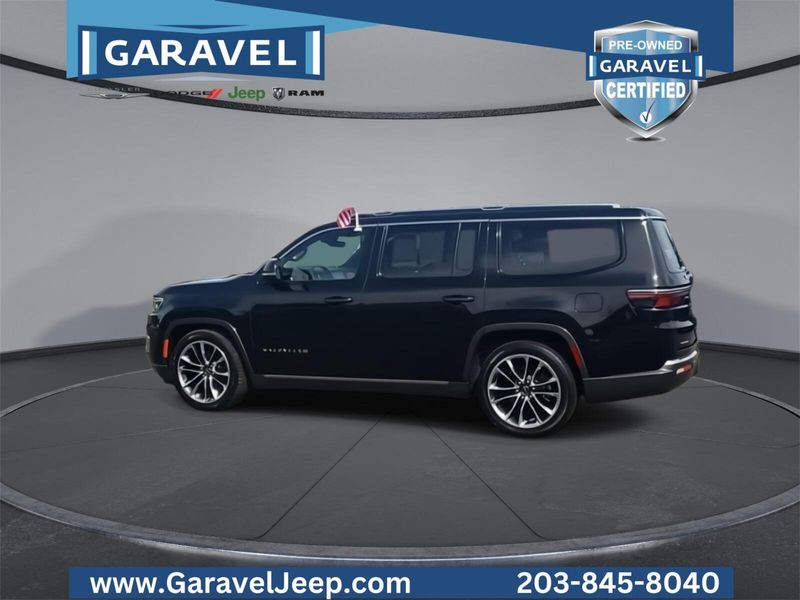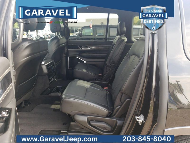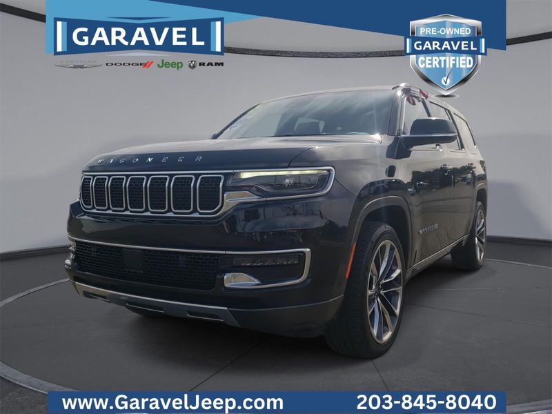 2022 Jeep Wagoneer Series III Diamond Black Crystal Pearlcoat Garavel Certified, 5.7L V8, 4WD, Global Black w/Leather Trimmed Bucket Seats, ***CARFAX No Accidents Reported!***, ***Priced Below Kelley Blue Book!***, ***Panoramic Sunroof / Moonroof***, ***Apple CarPlay/Android Auto!***, ***Navigation / Nav / GPS System***, ***Heads-Up Display***, ***Quadra-Lift Air Suspension***, ***Uconnect 5 Nav w/10.1'' Display***, 19 Speaker McIntosh Audio System, 22'' Polished Aluminum Wheels w/ Black Noise Pockets, 3rd?Row Seat with 60/40 Power Fold/Recline, Flexible Seating Group, Heated Front Seats, Heated Second Row Seats, Heated steering wheel, Power Deployable Running Boards, Power Liftgate, Power Tip/Slide Recline 2nd Row Buckets, Premium Group I (DISC), Turn signal indicator mirrors.