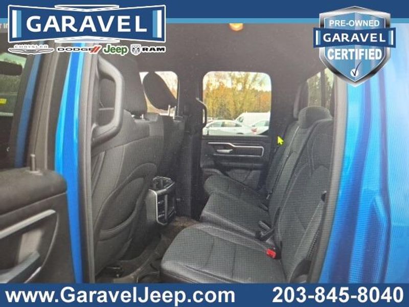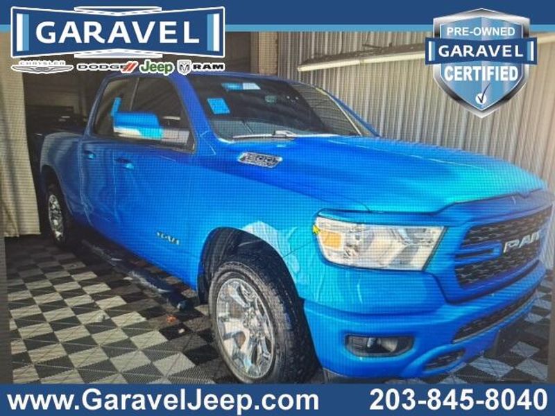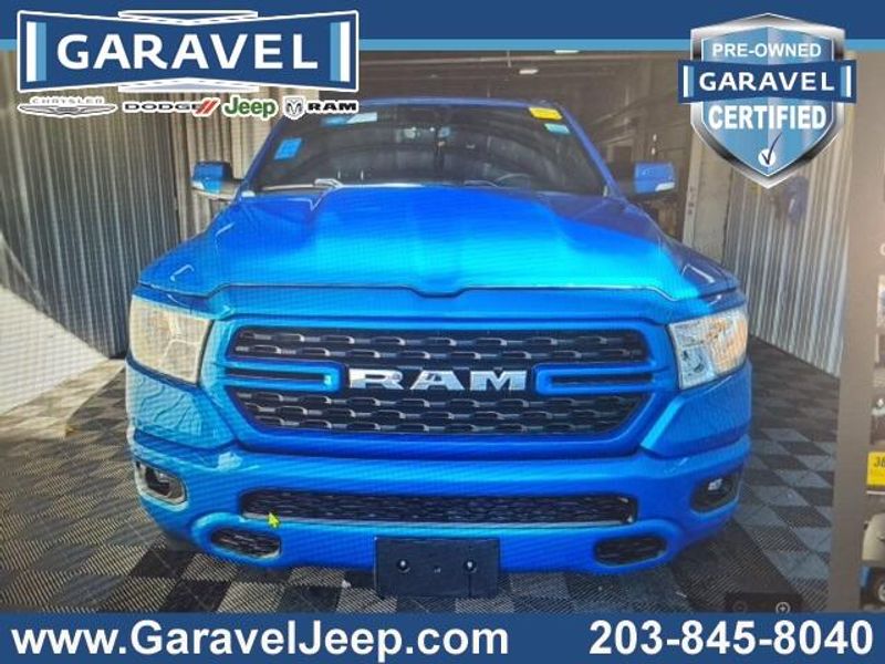 2022 Ram 1500 Big Horn/Lone Star Hydro Blue Pearlcoat Garavel Certified, HEMI 5.7L V8 Multi Displacement VVT, 4WD, Black w/Deluxe Cloth Bucket Seats, ***CARFAX One Owner and No Accidents Reported!***, ***Apple CarPlay/Android Auto!***, 20'' Aluminum Chrome Clad Wheels, 8.4'' Touchscreen Display, Big Horn Level 1 Equipment Group, Bluetooth Handsfree Phone & Audio, Body Color Exterior Mirrors, Class IV Receiver Hitch, Electronic Stability Control, Exterior Mirrors w/Supplemental Signals, For Details, Visit DriveUconnect.com, Leather steering wheel, ParkView Rear Back-Up Camera, Power Adjustable Pedals, Power-Folding Mirrors, Rear Power Sliding Window, Rear Window Defroster, Remote Start System, Sport Appearance Package, Sport Decal, Steering wheel mounted audio controls, Traction control.